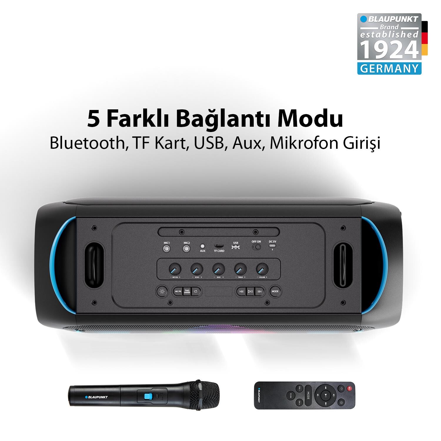 • Giriş portları: 2 adet mikrofon, 1 adet Aux girişi, MicroSD kart giriş, USB bellek girişi