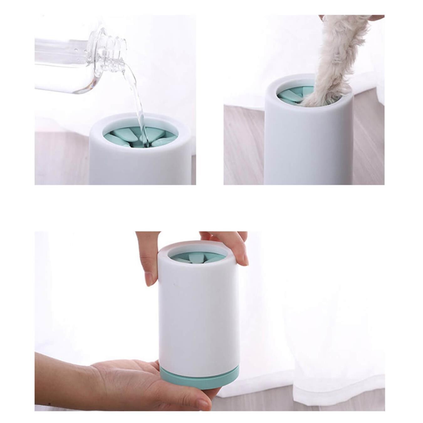 Pati Temizleyici, içerisinde yer alan yumuşak silikon fırçalarla patileri kolaylıkla temizler.