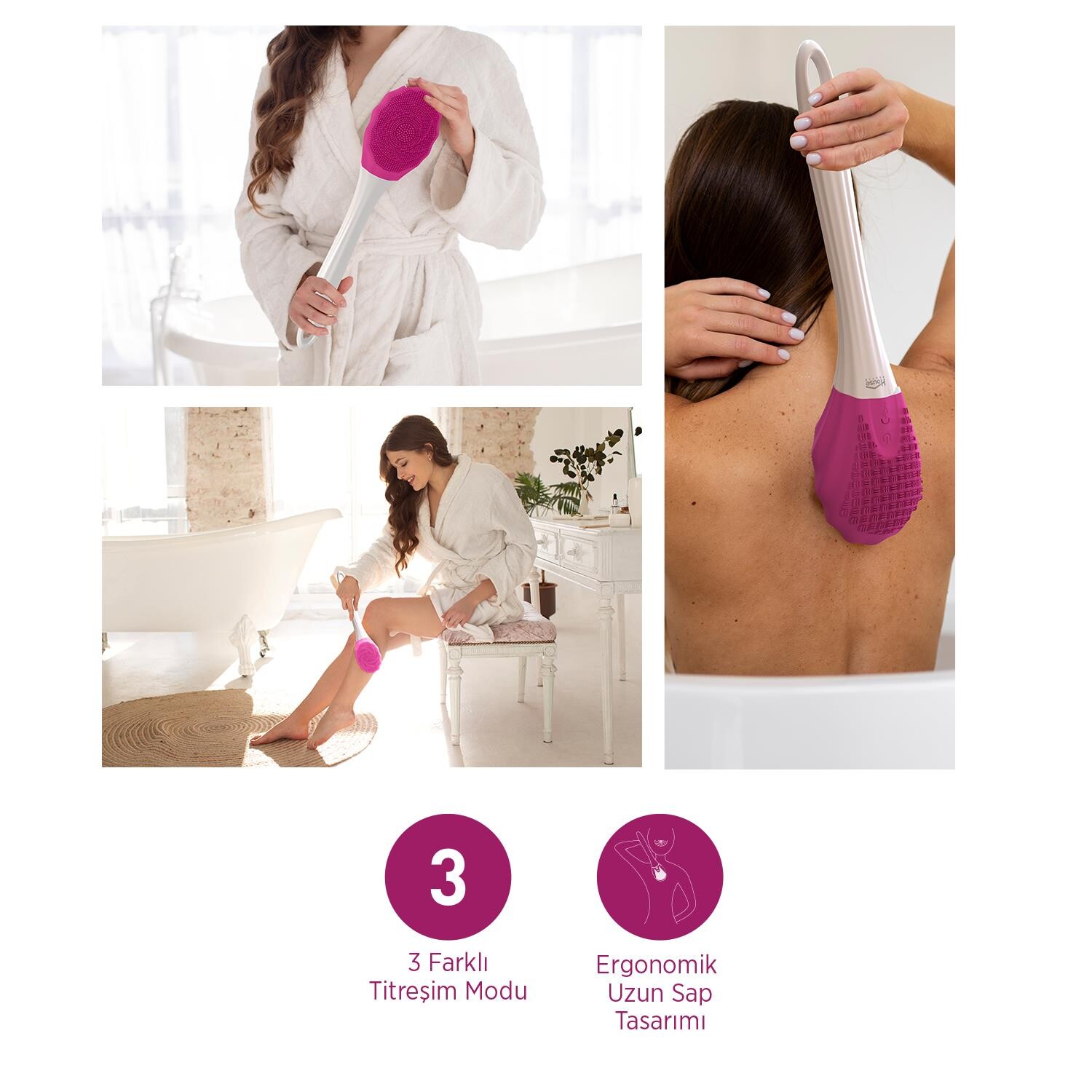 Banyo rutininizi üst seviyeye taşıyın! **HP87 Şarjlı Duş Fırçası**, yumuşak silikon başlığı ve **3 farklı titreşim modu** ile derinlemesine temizlik ve rahatlatıcı masaj sunar. Ergonomik tasarımı, uzun süreli kullanıma uygun bataryası ve **Type-C şarj** özelliği ile banyonuzun vazgeçilmezi olacak.