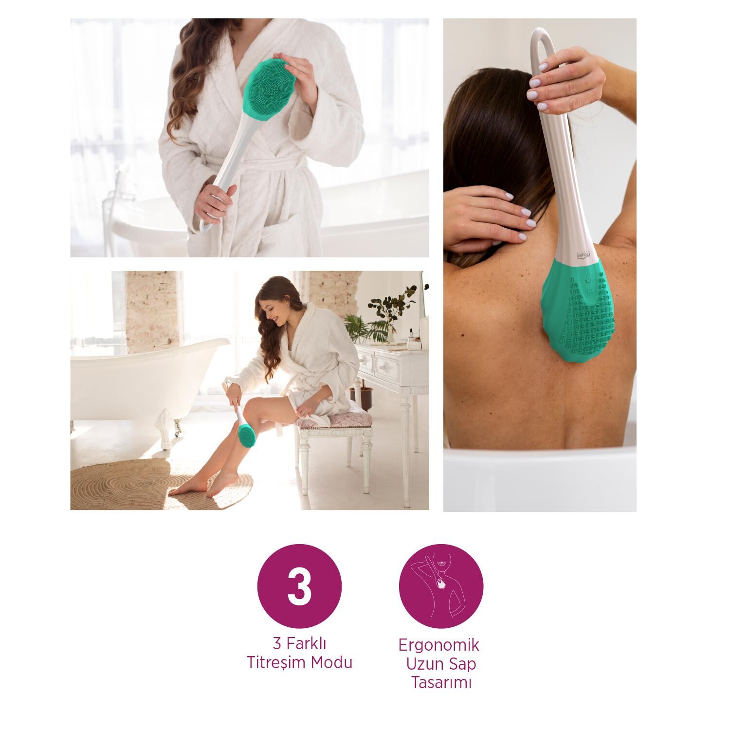 Banyo rutininizi üst seviyeye taşıyın! **HP87 Şarjlı Duş Fırçası**, yumuşak silikon başlığı ve **3 farklı titreşim modu** ile derinlemesine temizlik ve rahatlatıcı masaj sunar. Ergonomik tasarımı, uzun süreli kullanıma uygun bataryası ve **Type-C şarj** özelliği ile banyonuzun vazgeçilmezi olacak.