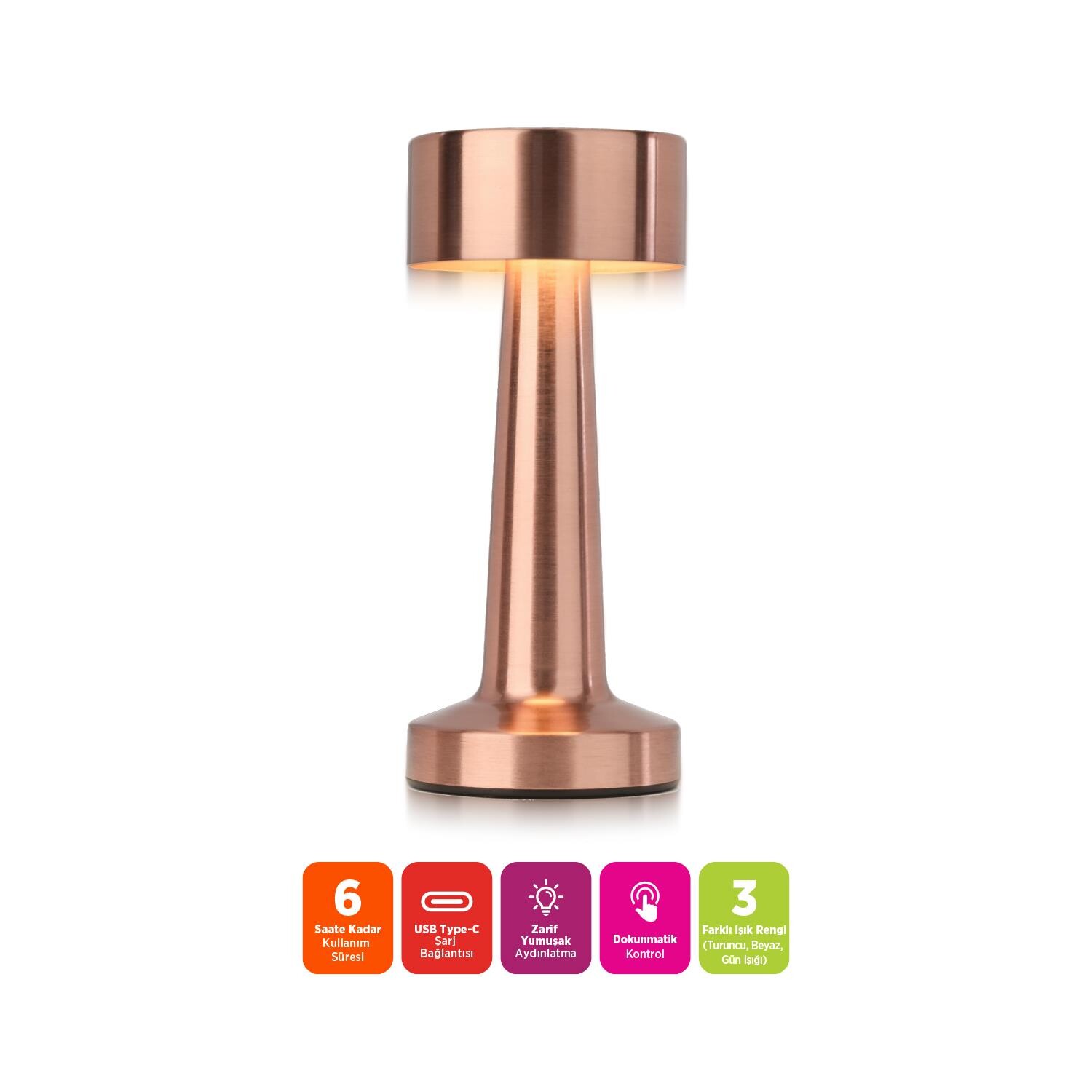 • 3 Farklı ışık rengi (Turuncu, beyaz, gün ışığı)