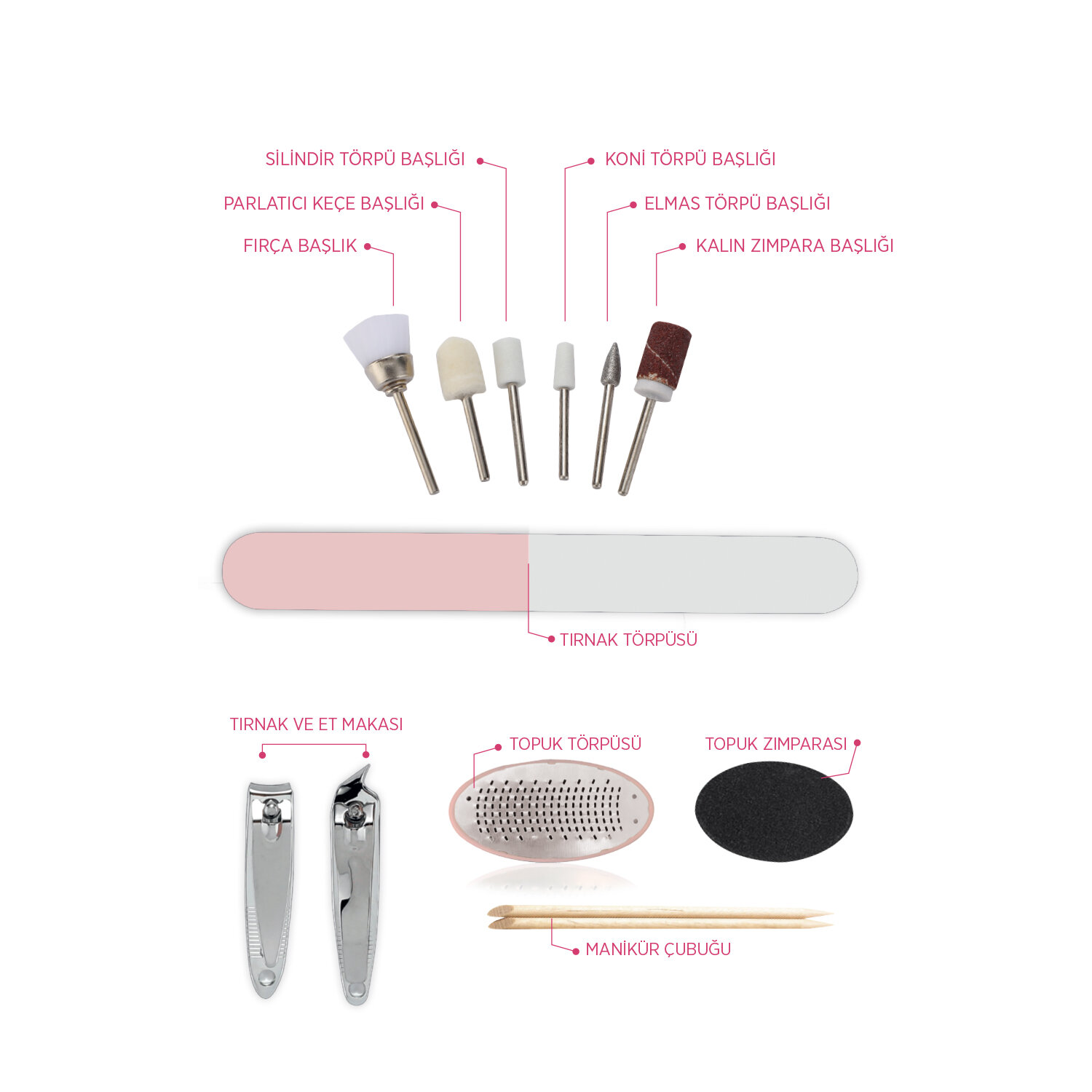 Polosmart PSC52 Topuk Tırnak Törpülü Tırnak Makaslı Pedikürlü Ayak Bakım Seti Pembe