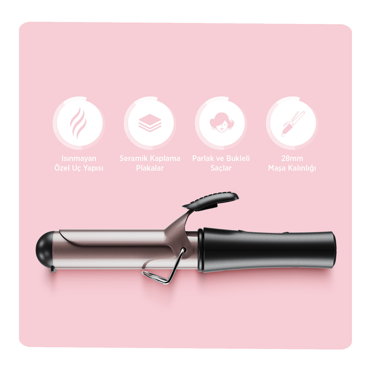 Polosmart PSC43 Taşınabilir Elektrikli Profesyonel 32mm Çap 120W Su Dalgası Wag Saç Maşası Rose Gold