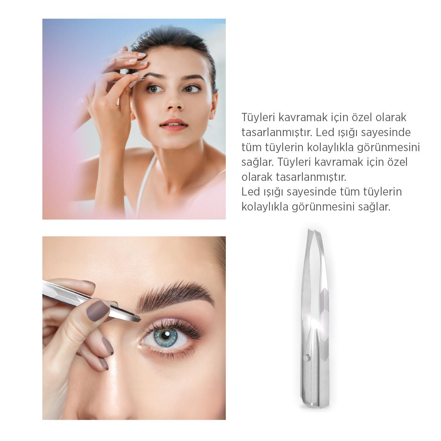 Polosmart PSC100 Paslanmaz Çelik Ergonomik İnce Uçlu Kaş Şekillendirici Led Işıklı Cımbız