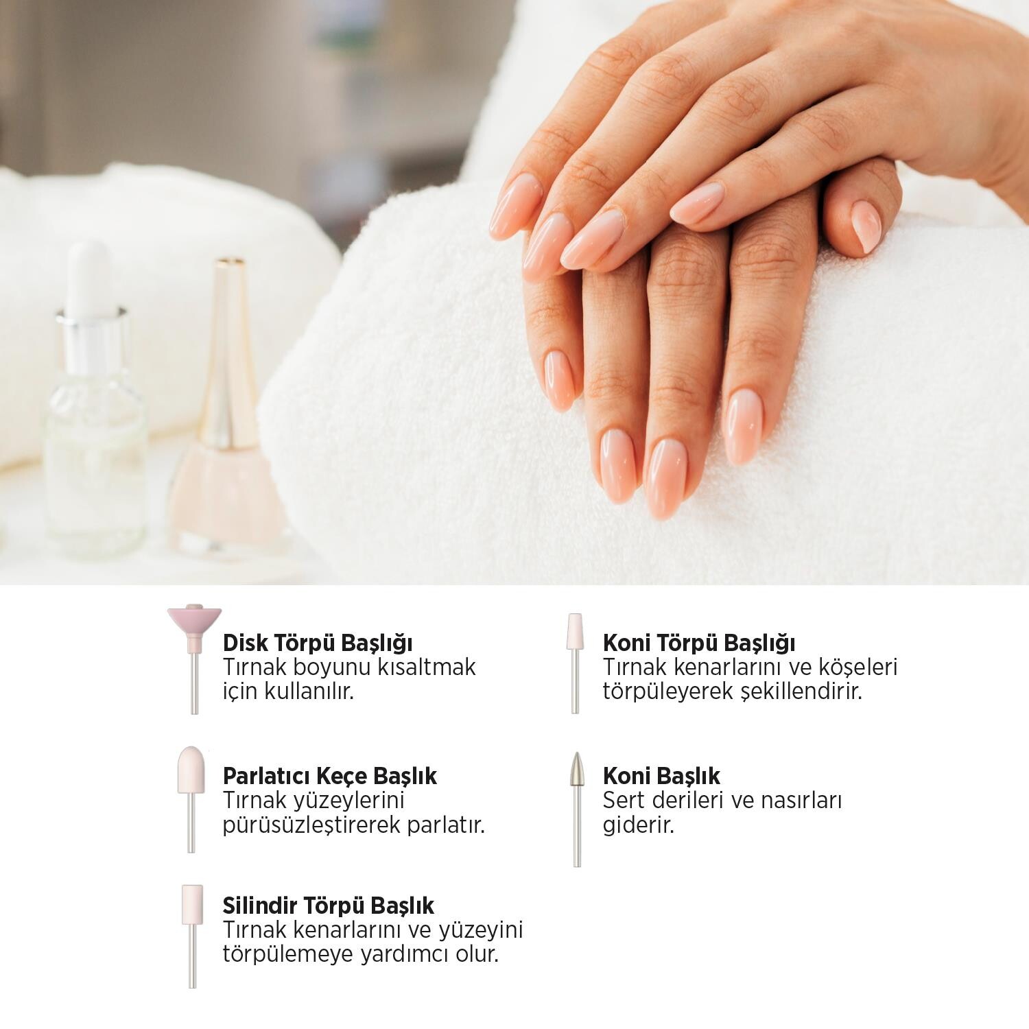 Manikür pedikür seti, değiştirilebilir 5 farklı başlığıyla el ve ayak bakımında Type-C LED 90 dk