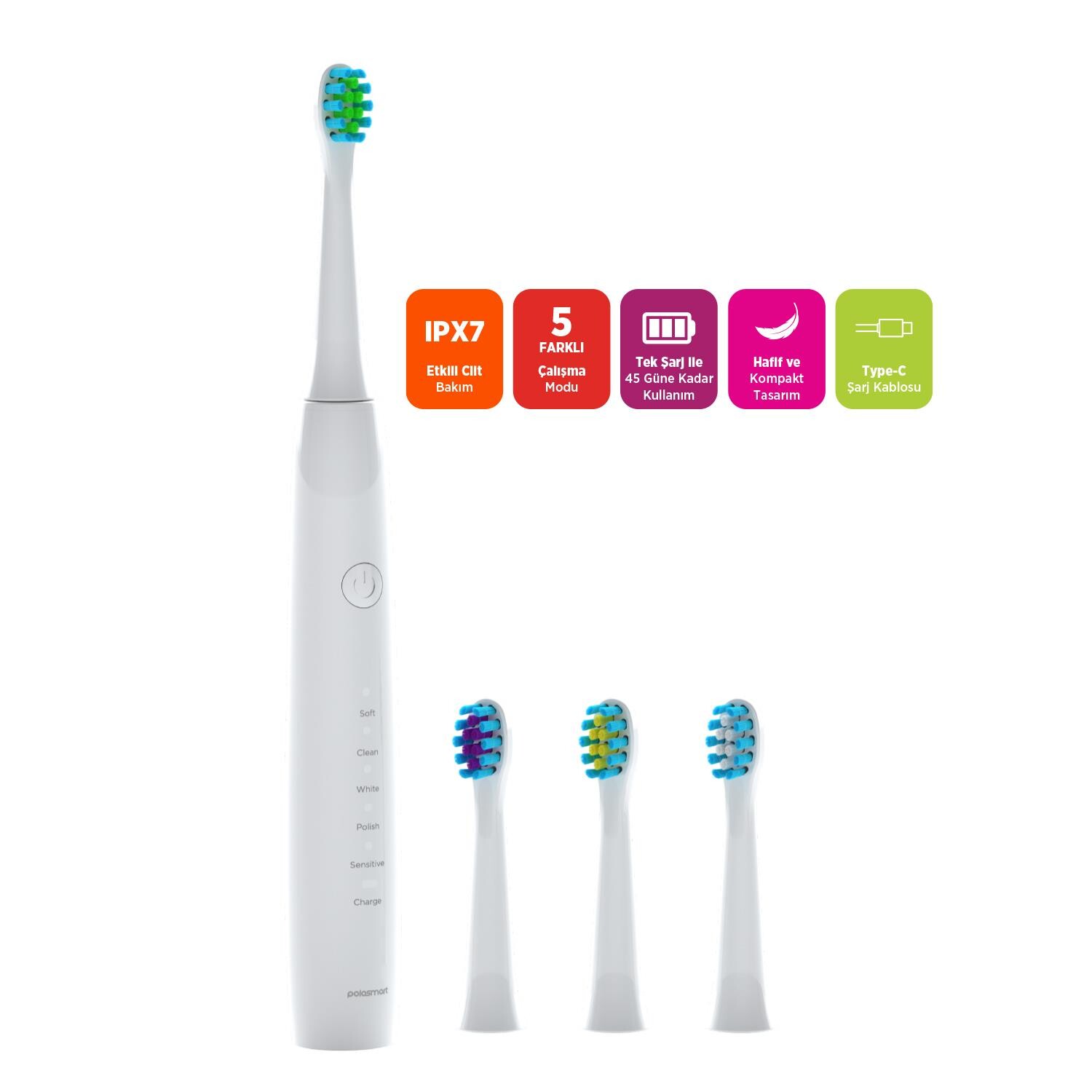 🦷 PSC75 Elektrikli Diş Fırçası: 5 Mod, Type-C, IPX7 ve 4 Yedek Başlık