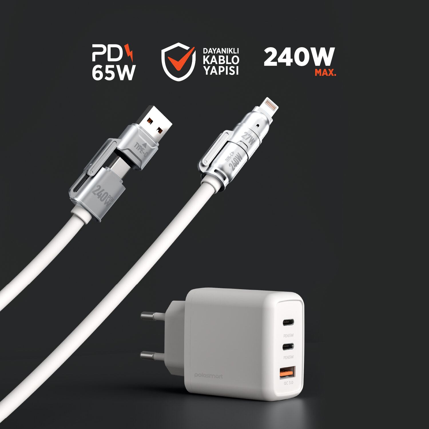 PSM142 65W PD Duvar Şarjı & 4IN1 Şarj Kablosu