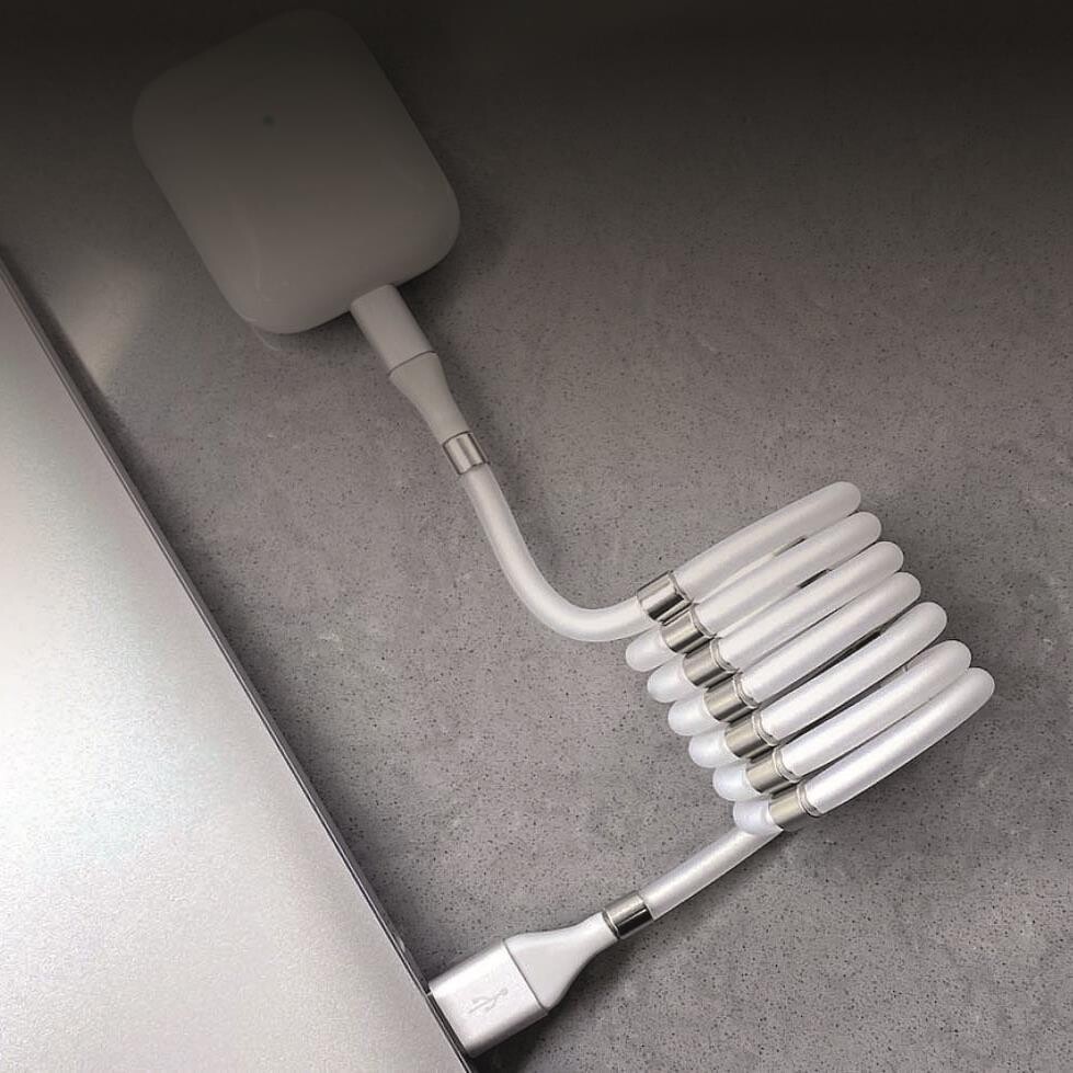 Polosmart PSM67 Power Connect Mıknatıslı Sarmal Şarj ve Data Kablosu 1 Metre Beyaz